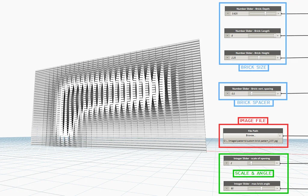 The resultant arrangement of bricks can then be easily imported into Revit for documentation.